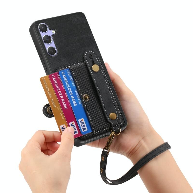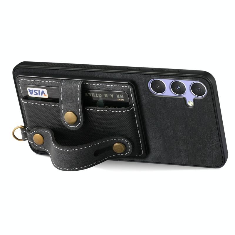 Για Samsung Galaxy S25+ 5G Ρετρό Σταυρός Wristband πορτοφόλι δέρμα πίσω τηλέφωνο υπόθεση (Μαύρο)