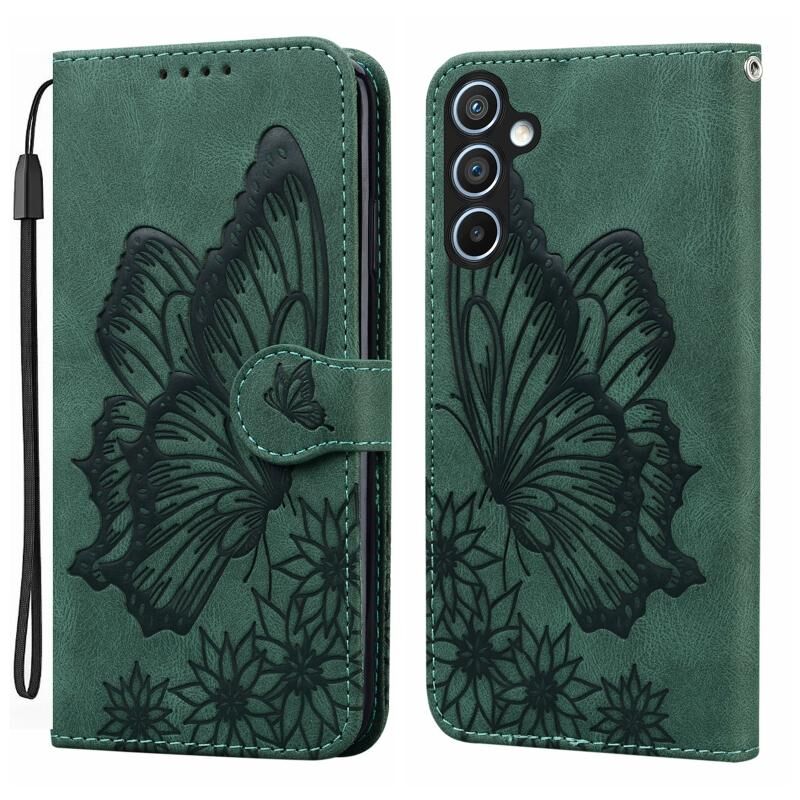 For Samsung Galaxy S25 5G Retro Skin Feel Butterflies Embossing Horizontal Flip Leather Phone Case(Green)