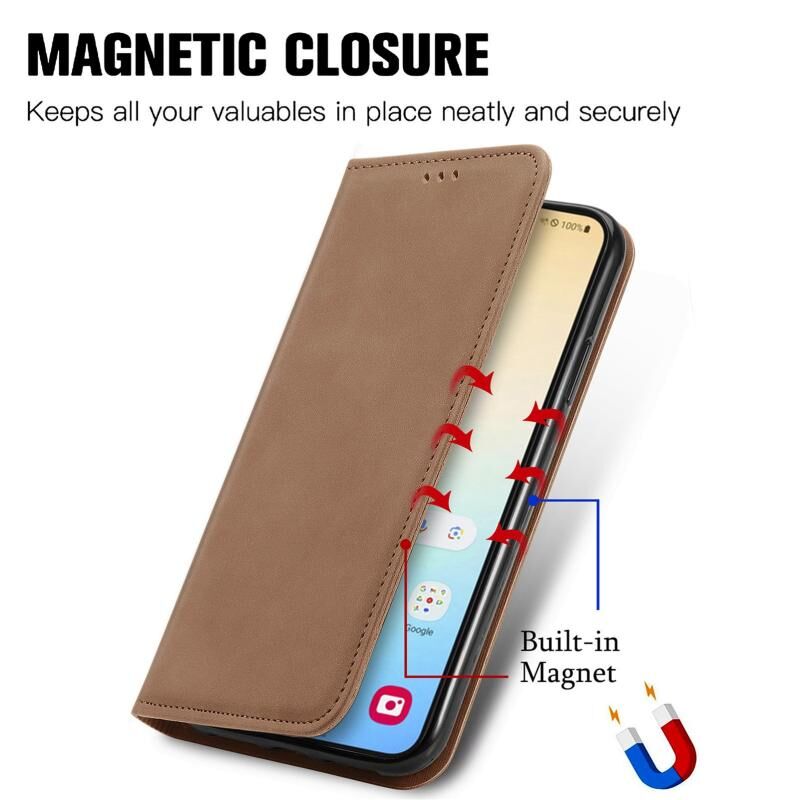Για Samsung Galaxy S25 5G Retro δέρμα αίσθηση δέρματος μαγνητική δερμάτινη θήκη τηλεφώνου (Καφέ)