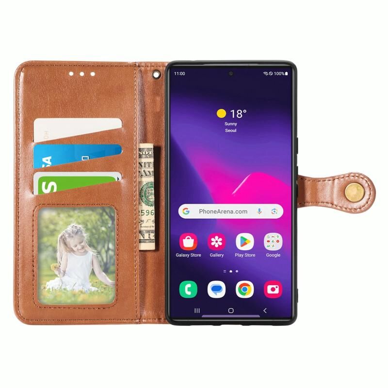 Για Samsung Galaxy S25+ 5G Ρετρό στερεό χρώμα αγκράφα δερμάτινη θήκη τηλεφώνου (Καφέ)