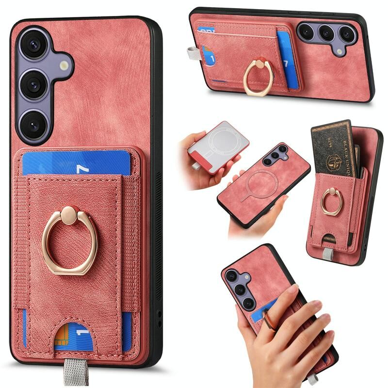 Για Samsung Galaxy S25+ 5G Retro Splitable μαγνητική τσάντα κάρτα τσάντα δέρμα τηλέφωνο υπόθεση (ρόζ)