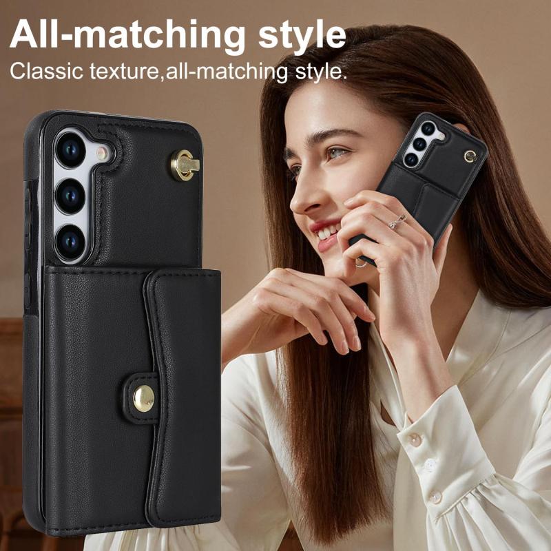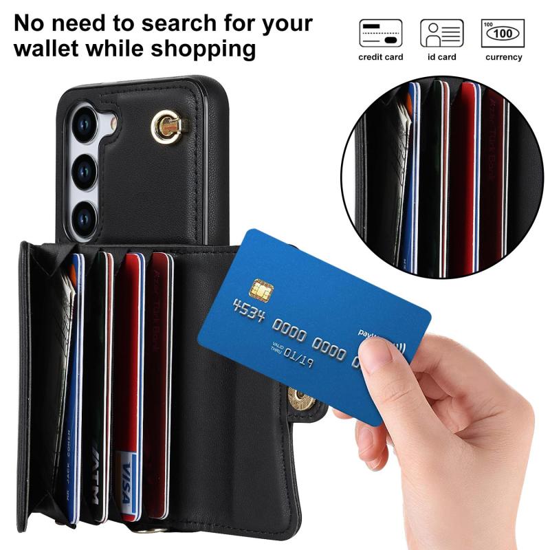For Samsung Galaxy S25 5G RFID Card Slot Phone Case with Long Lanyard(Black)
