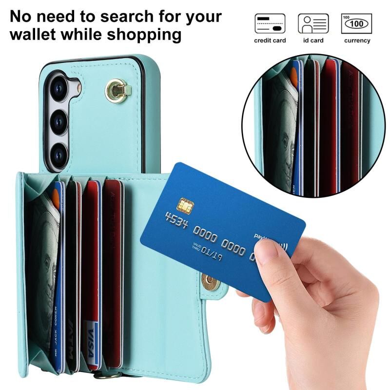 For Samsung Galaxy S25 5G RFID Card Slot Phone Case with Long Lanyard(Mint Green)