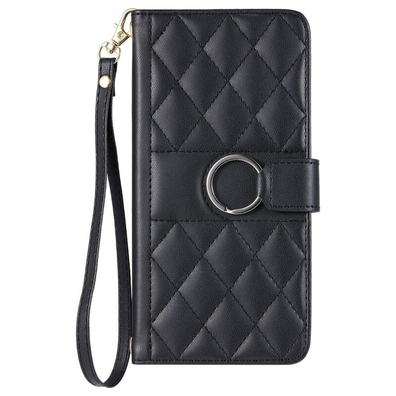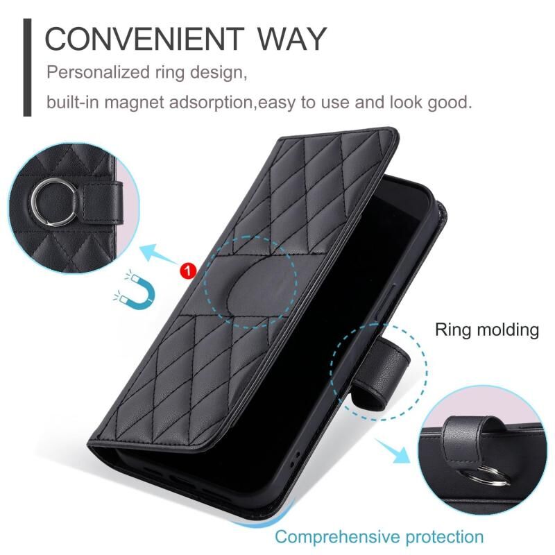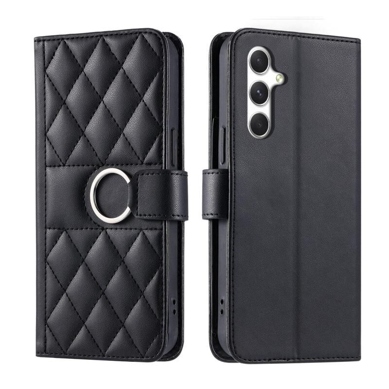 Θήκη τηλεφώνου Samsung Galaxy S25+ 5G από δέρμα με σχέδιο ρόμβου και αγκράφα δακτυλιδιού (Μαύρο)