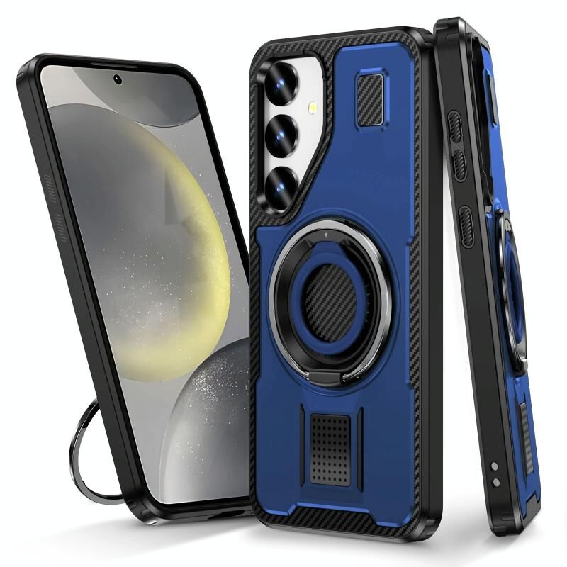 Για Samsung Galaxy S25 5G δαχτυλίδι κάτοχος ανθρακονήματα PC υβριδικό TPU τηλέφωνο υπόθεση (μπλε)