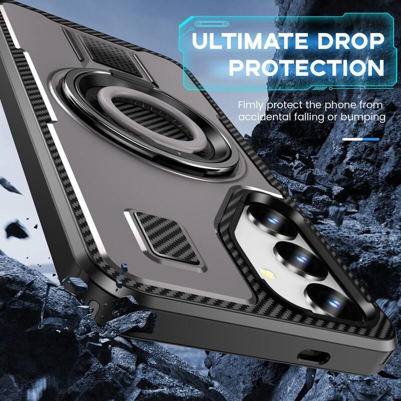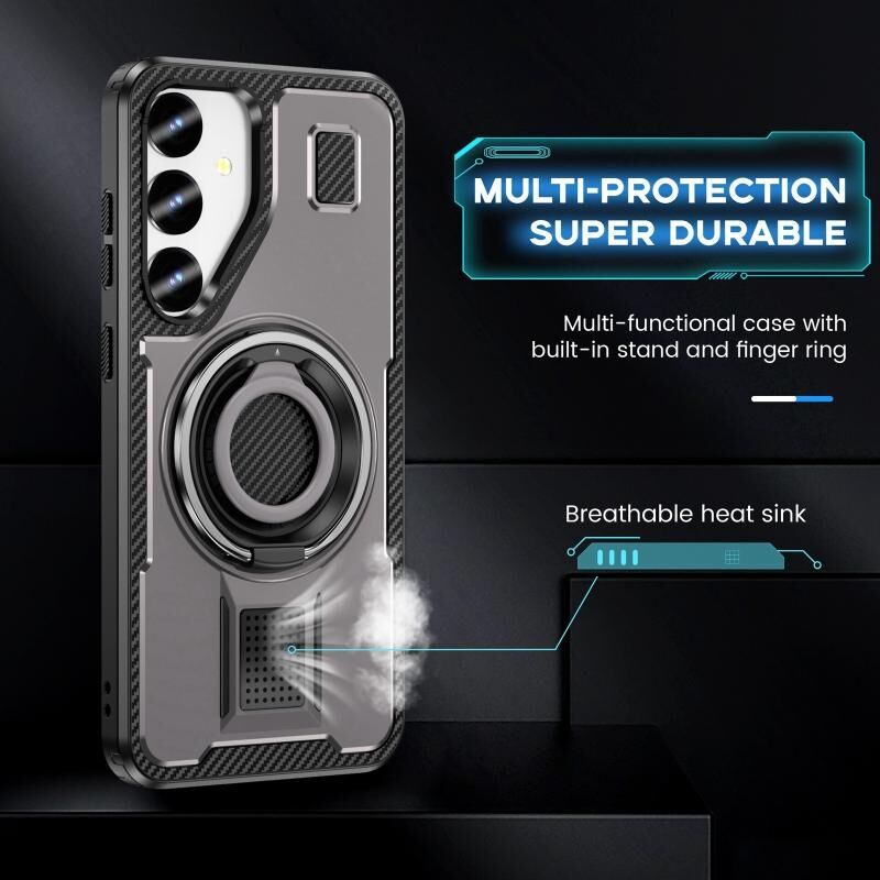 Για Samsung Galaxy S25 5G δαχτυλίδι κάτοχος Carbon Fiber PC υβριδικό TPU τηλέφωνο υπόθεση (γκρι)