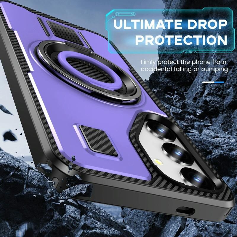 Για Samsung Galaxy S25 5G δαχτυλίδι κάτοχος Carbon Fiber PC υβριδικό TPU τηλέφωνο υπόθεση (μωβ)