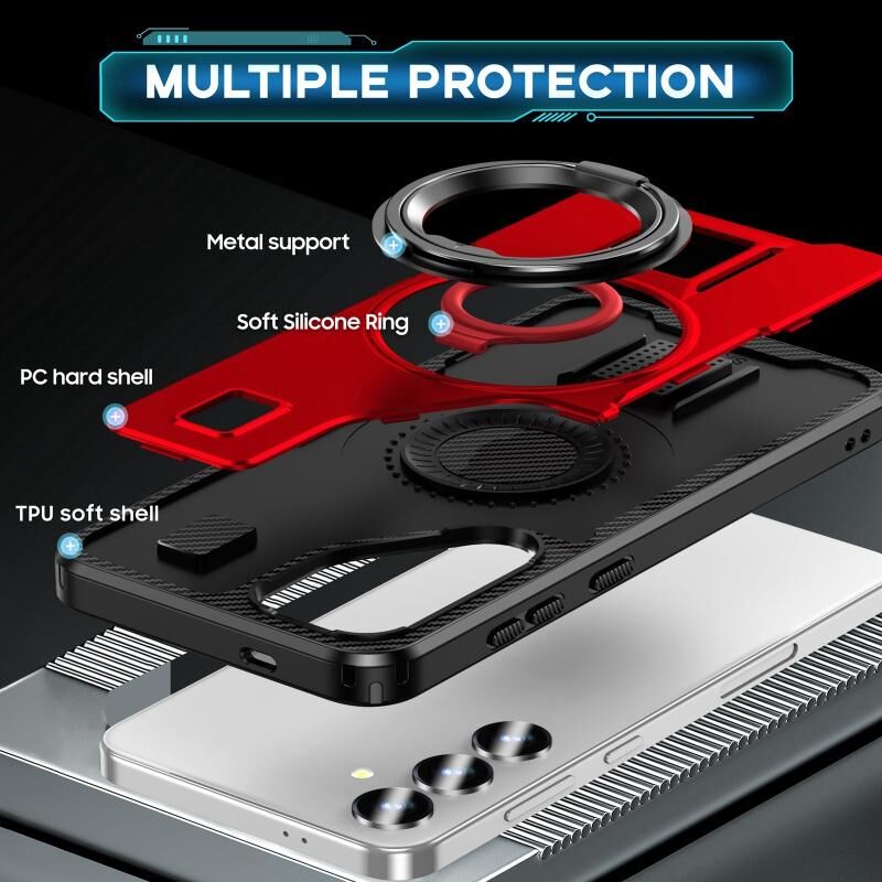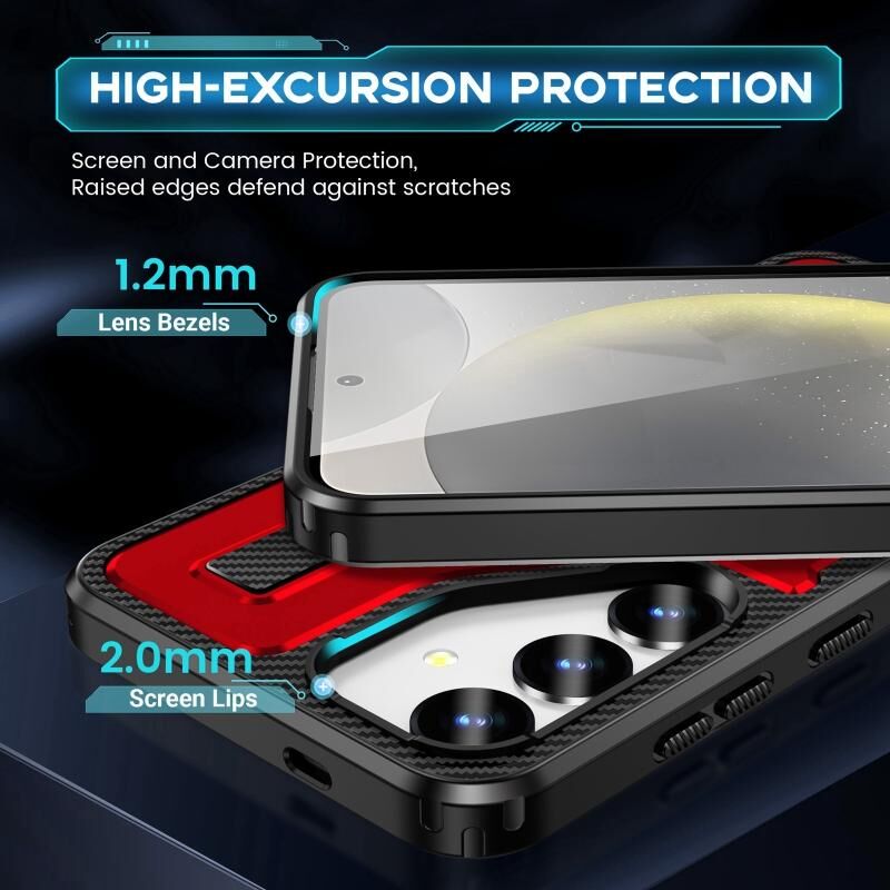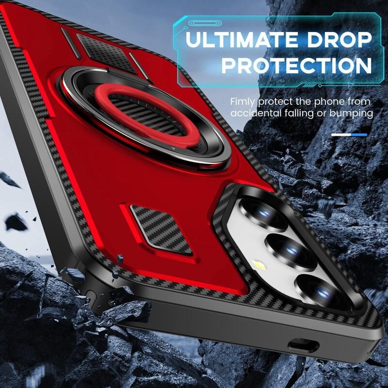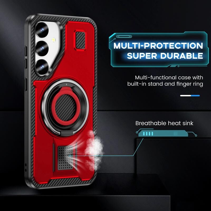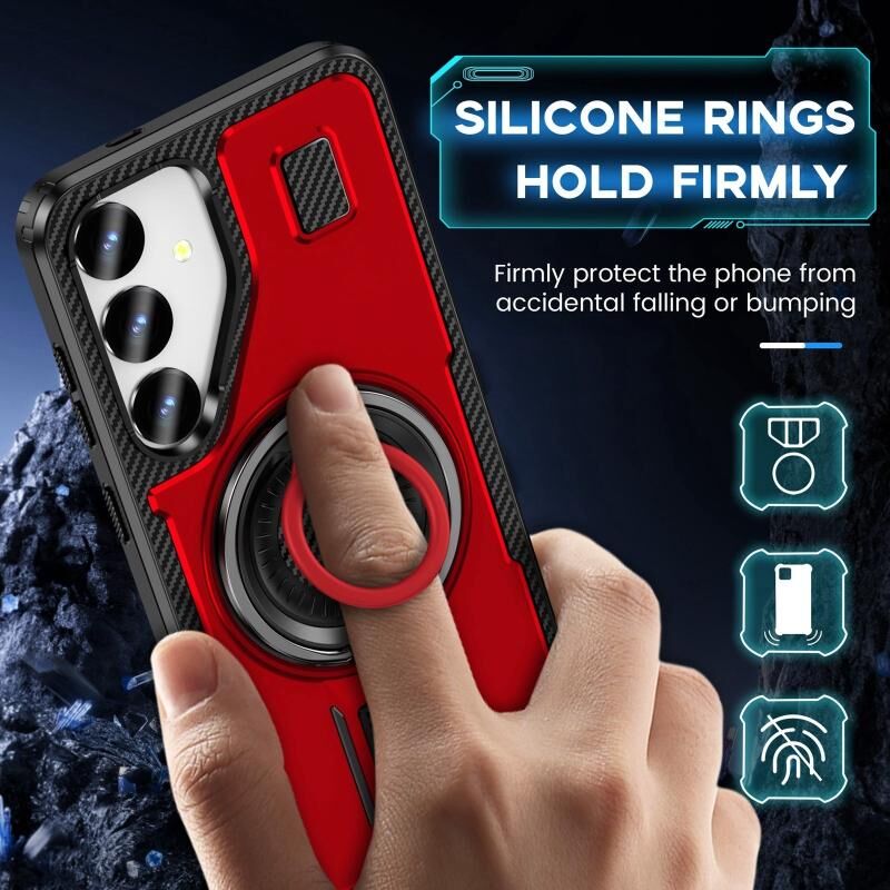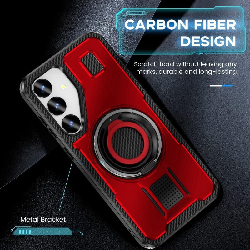 Για Samsung Galaxy S25 5G δαχτυλίδι κάτοχος Carbon Fiber PC υβριδικό TPU τηλέφωνο υπόθεση (κόκκινο)