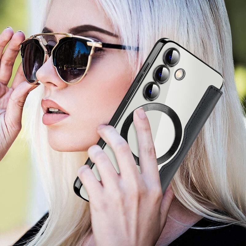 Θήκη τηλεφώνου Samsung Galaxy S25 5G Shield MagSafe RFID Anti-theft από δέρμα με ρόμβους (Σκούρο Μπλε)