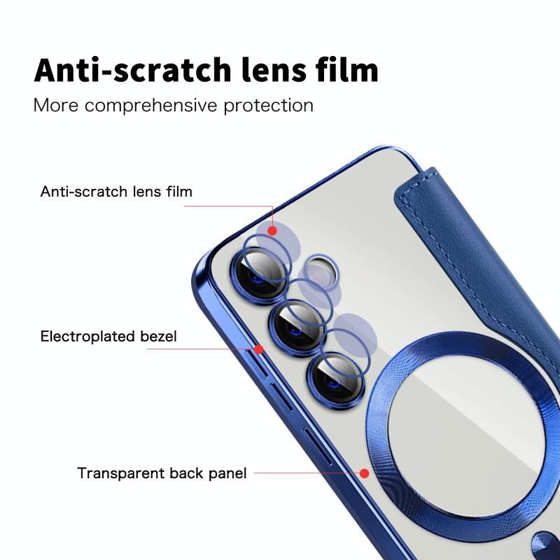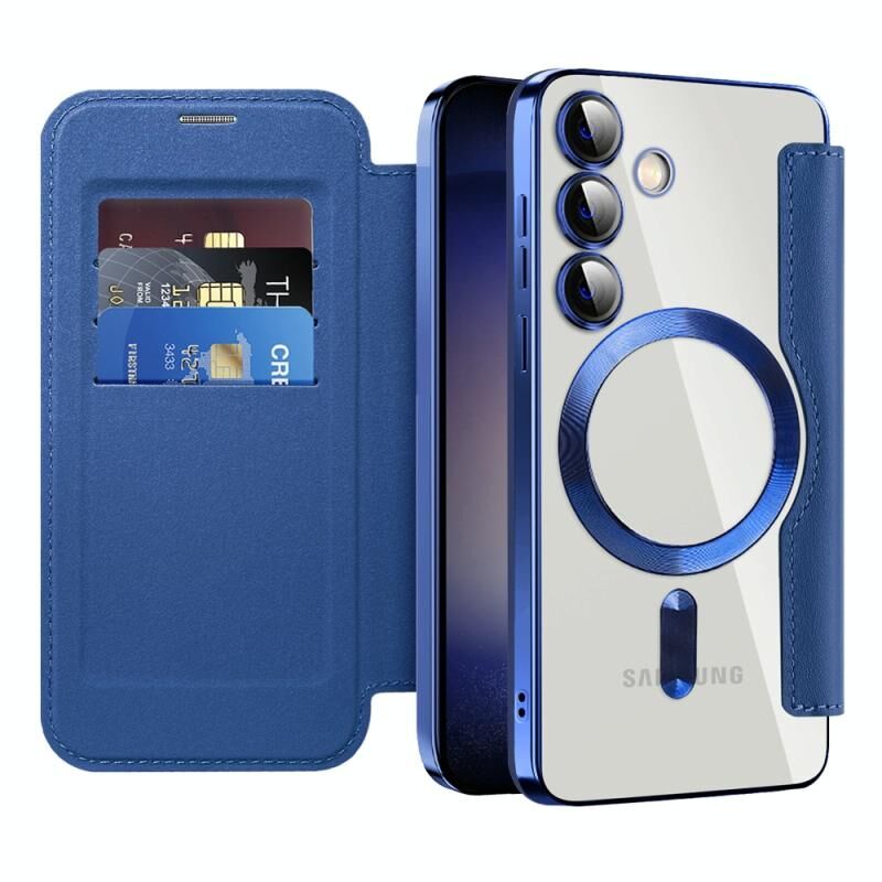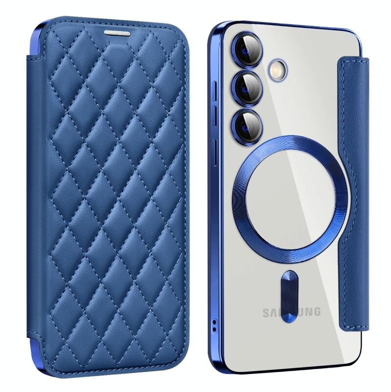 Θήκη τηλεφώνου Samsung Galaxy S25 5G Shield MagSafe RFID Anti-theft από δέρμα με ρόμβους (Σκούρο Μπλε)