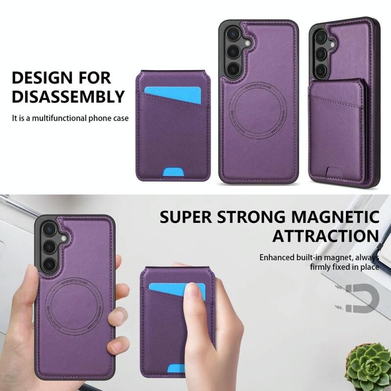 Θήκη κινητού Samsung Galaxy S25 5G με αίσθηση δέρματος, αποσπώμενη τσέπη για κάρτες και MagSafe (Μαύρο)
