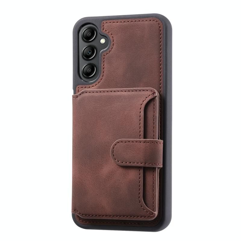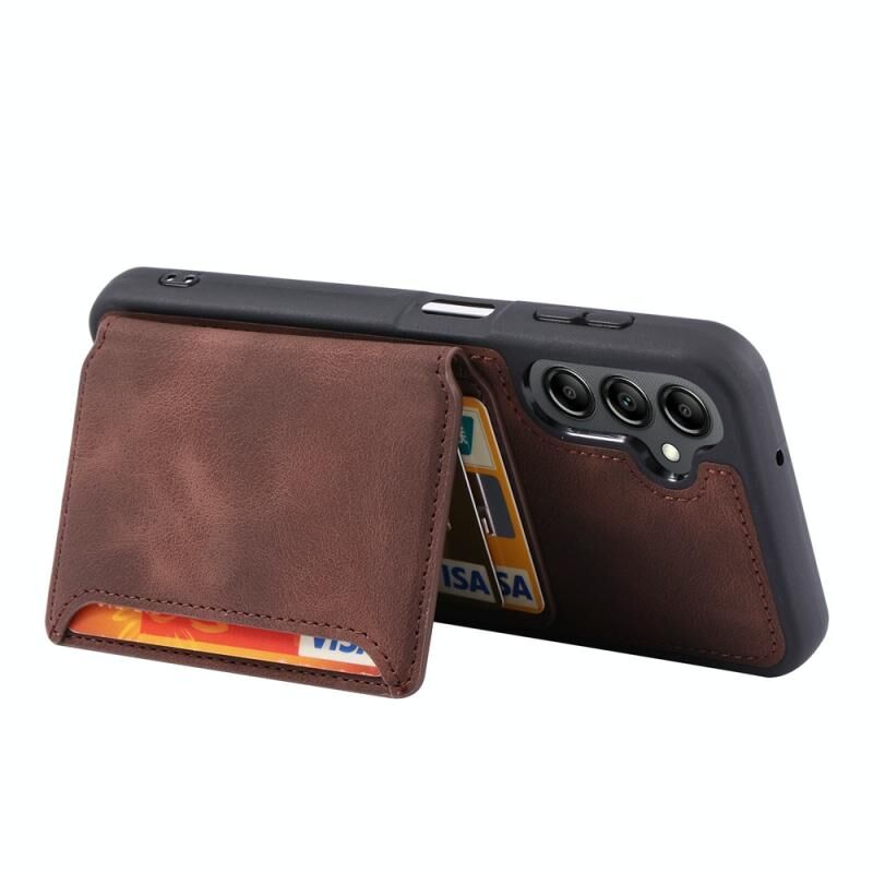 Θήκη κινητού τηλεφώνου Samsung Galaxy S25 5G με αίσθηση δέρματος, όνειρο, αντι-κλοπής RFID, τσάντα κάρτας PU (Καφέ)