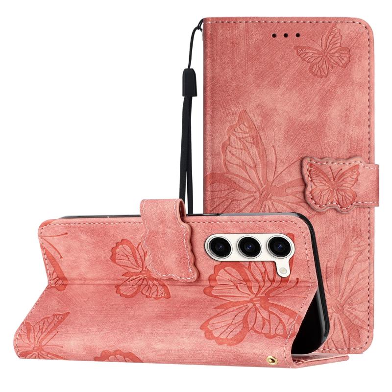 Θήκη τηλεφώνου Samsung Galaxy S25 5G από δέρμα με ανάγλυφο σχέδιο πεταλούδας, αίσθηση δέρματος (Μαύρο)