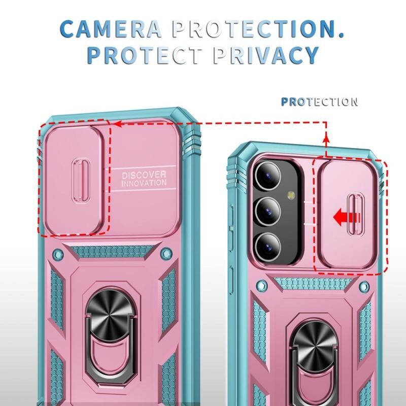 Για Samsung Galaxy S25+ 5G συρόμενη θήκη τηλεφώνου Camshield TPU Hybrid PC με θήκη (Ροζ+Πράσινο)