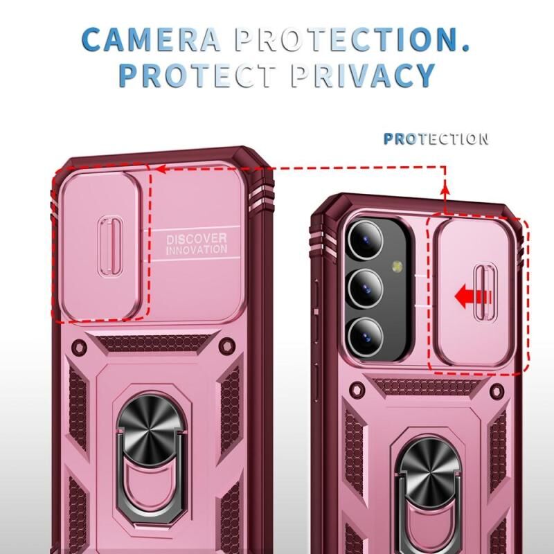 Για Samsung Galaxy S25 5G συρόμενη Camshield TPU Υβριδική θήκη τηλεφώνου PC με θήκη (ροζ + ροζ κόκκινο)