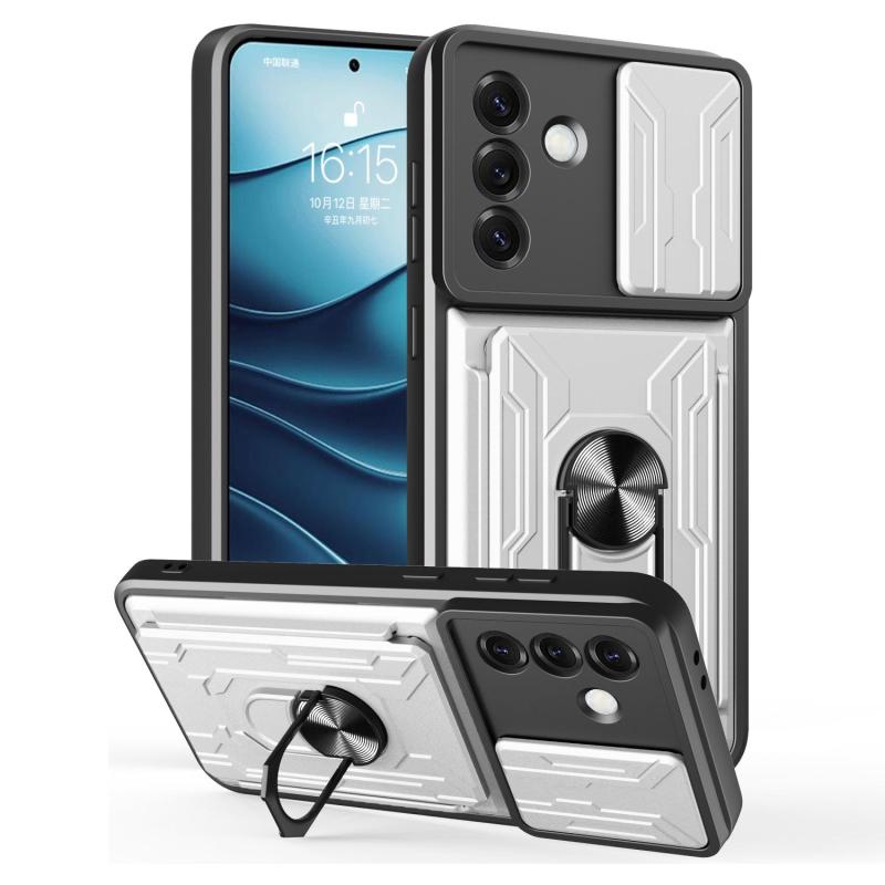 For Samsung Galaxy S25 5G Sliding Camshield TPU+PC Phone Case with Card Slot(White)
