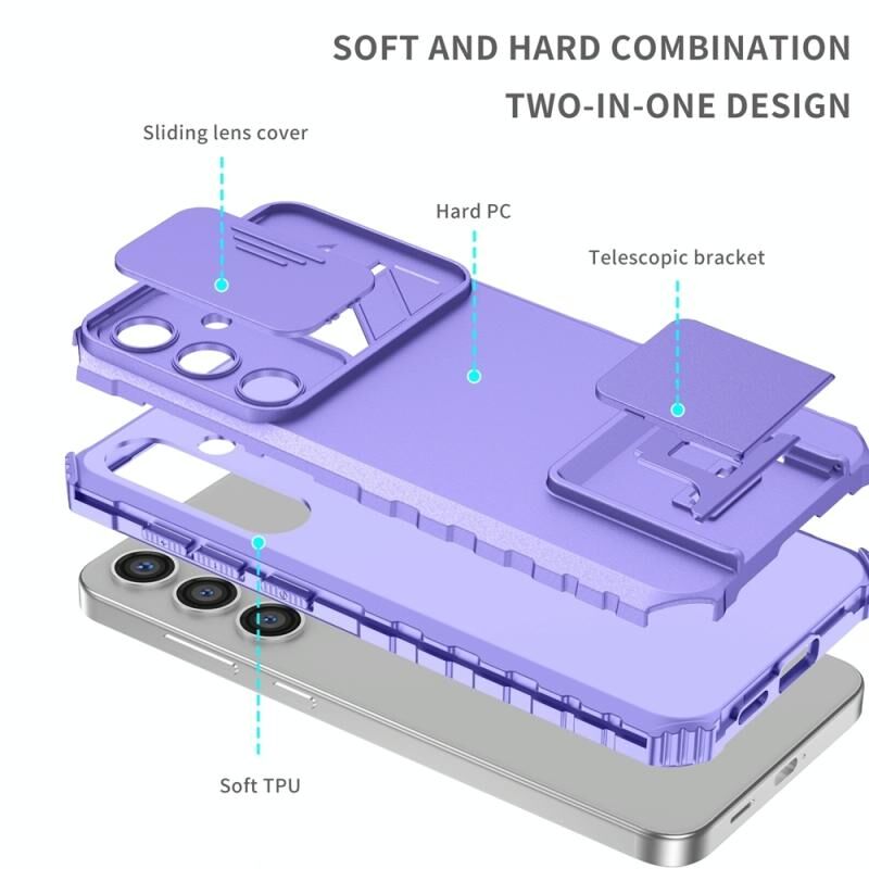 Για Samsung Galaxy S25+ 5G Στερεοσκοπική θήκη τηλεφώνου με συρόμενη θήκη Camshield (Μωβ)