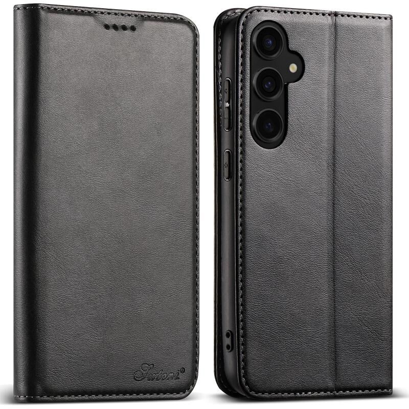Θήκη τηλεφώνου δέρματος οριζόντιας αναδίπλωσης με υφή μοσχαριού Suteni για Samsung Galaxy S25+ 5G (Μαύρο) (Μαύρο)