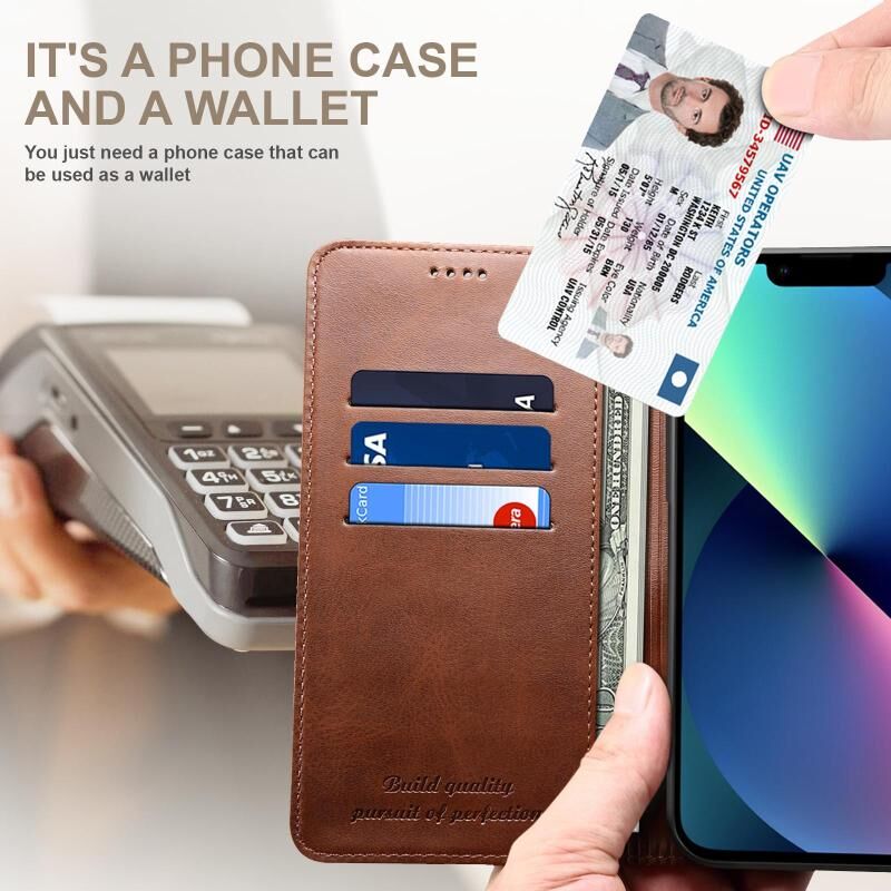 2. Λειτουργία πορτοφολιού: Η δερμάτινη θήκη είναι εξοπλισμένη με υποδοχές για κάρτες και ένα μικρό ποσό μετρητών.