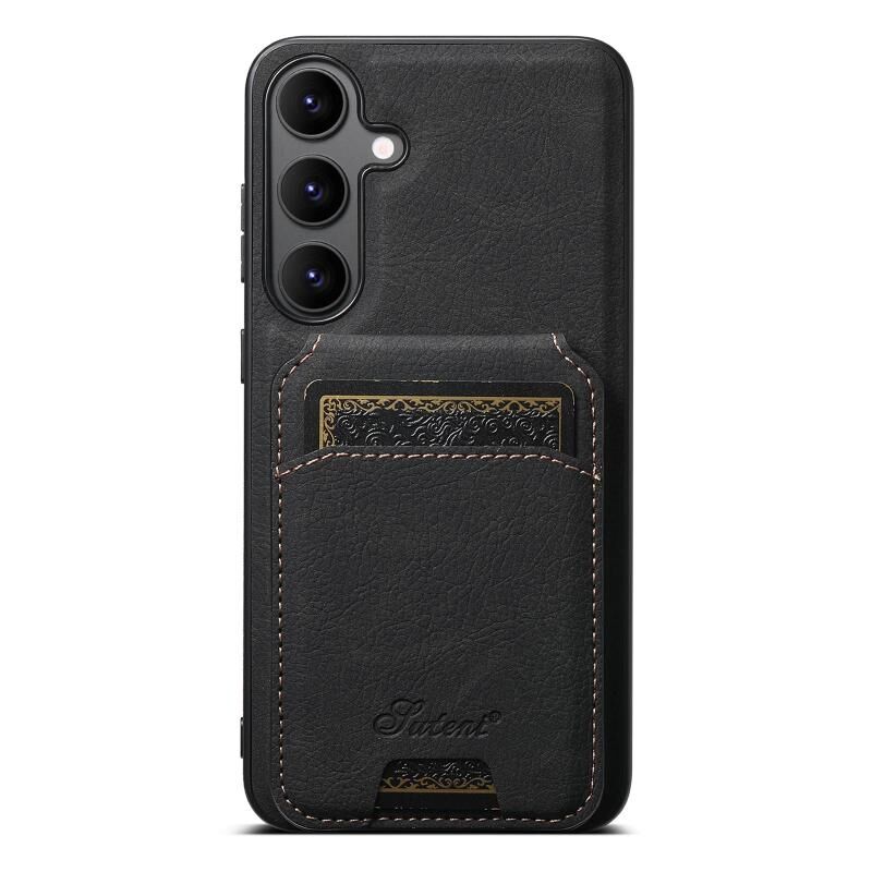 Θήκη κινητού τηλεφώνου με αποσπώμενο πορτοφόλι από δέρμα με υφή λύτσι για Samsung Galaxy S25+ 5G Suteni H16 (Μαύρο) (Μαύρο)