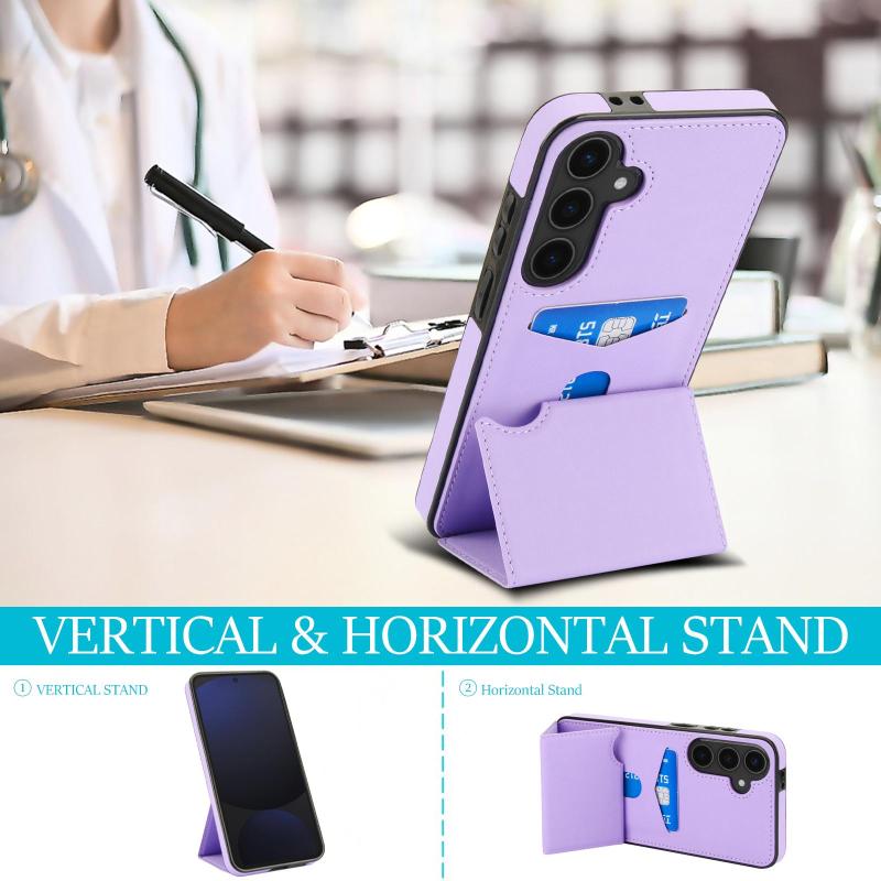 Θήκη τηλεφώνου Samsung Galaxy S25+ 5G τριπλού διπλώματος από δέρμα με υποδοχή κάρτας (ανοιχτό μωβ)