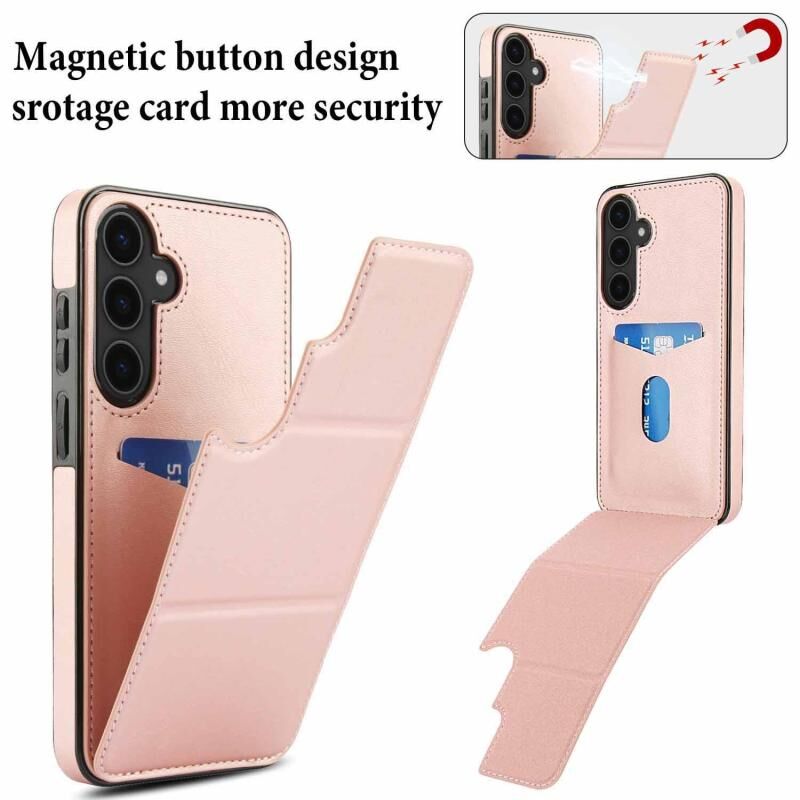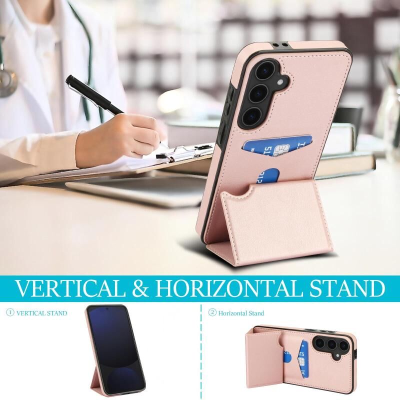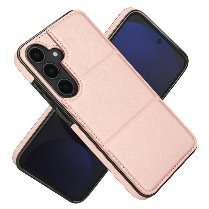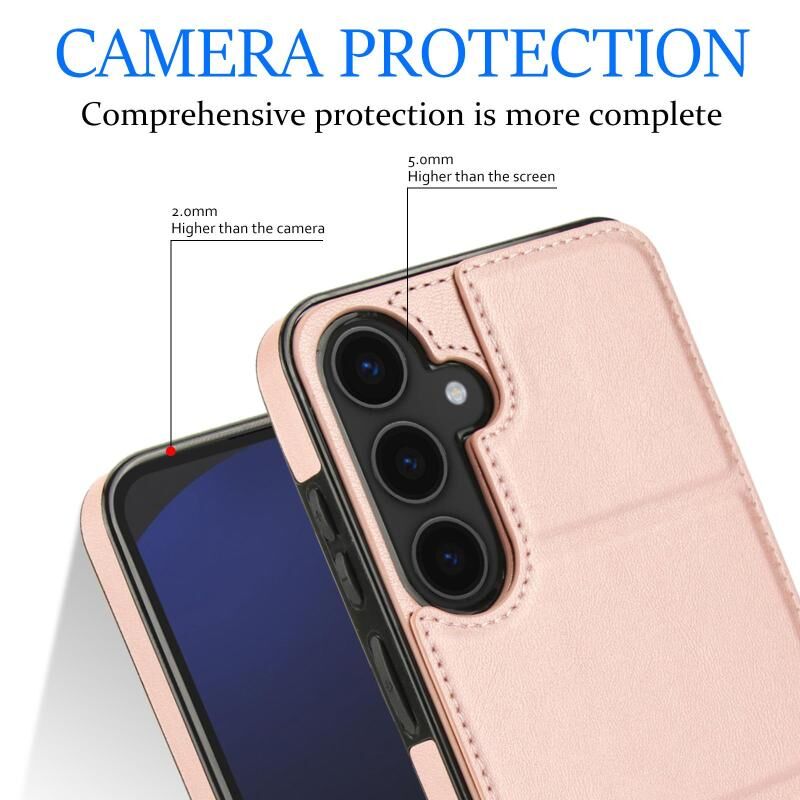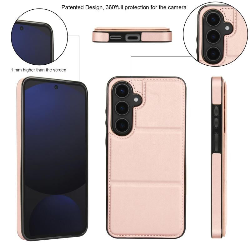 Θήκη τηλεφώνου Samsung Galaxy S25+ 5G τριπλού διπλώματος από δέρμα με υποδοχή κάρτας (Ροζ χρυσός)