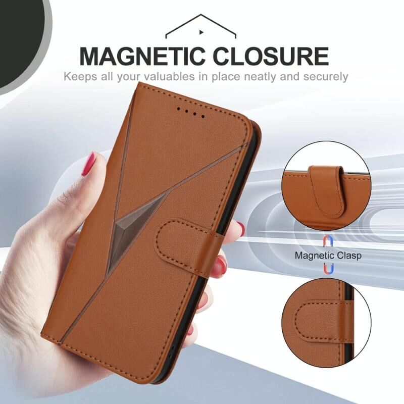 Για Samsung Galaxy S25+ 5G Τρίγωνο μοτίβο αγκράφα κούμπωμα δερμάτινη θήκη τηλεφώνου (Καφέ)