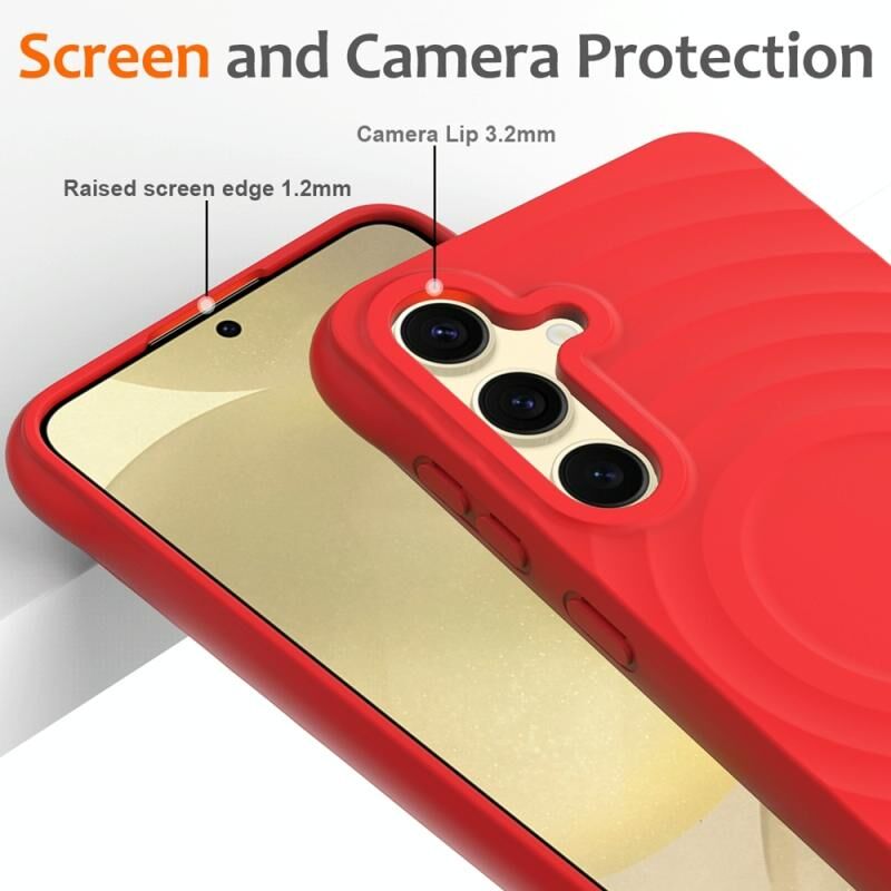 Θήκη κινητού Samsung Galaxy S25+ 5G με υγρή σιλικόνη, μαγνητική, MagSafe, με υφή κυμάτων (Μαύρο)