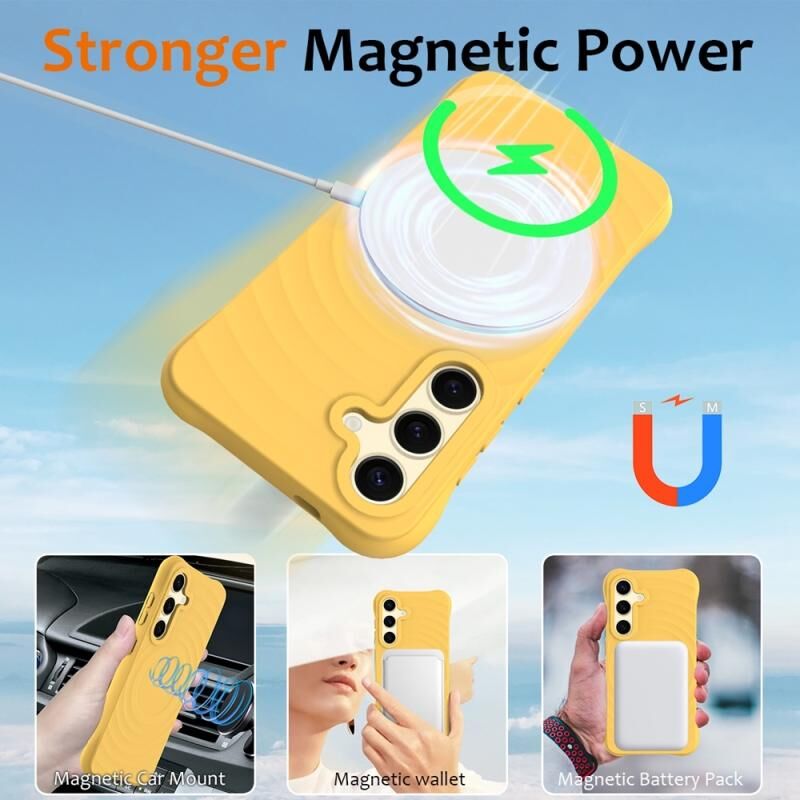 Θήκη κινητού Samsung Galaxy S25 5G με υγρή σιλικόνη, μαγνητική, με υφή κυμάτων και συμβατότητα MagSafe (Μαύρο)