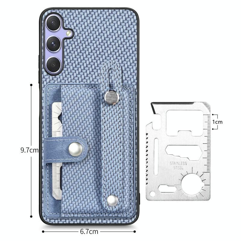 Για Samsung Galaxy S25 5G Wristband Kickstand Wallet Πίσω τηλέφωνο υπόθεση με εργαλείο μαχαίρι (μπλε)