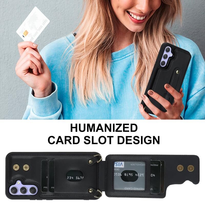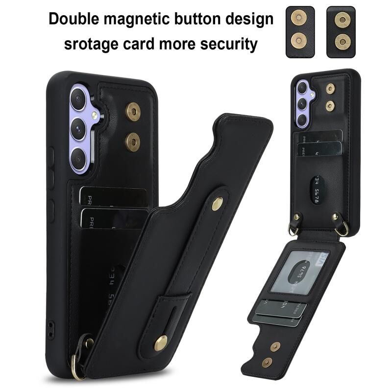 Για Samsung Galaxy S25+ 5G Βραχιόλι Θήκη Πορτοφολιού με Κάθετη Αναδίπλωση και Κάλυμμα για Κινητό με Μακρύ Λουρί (Μαύρο)