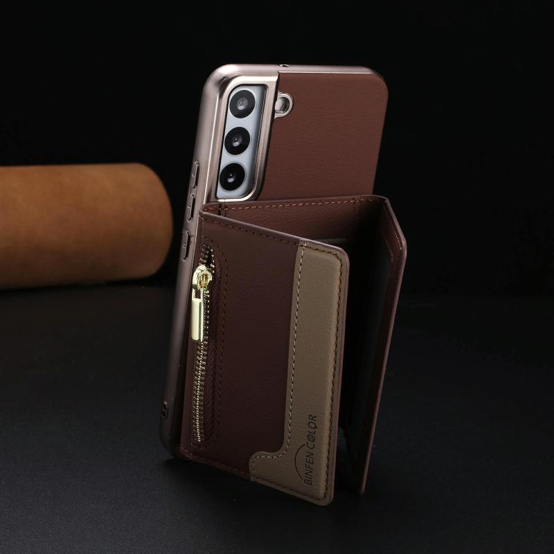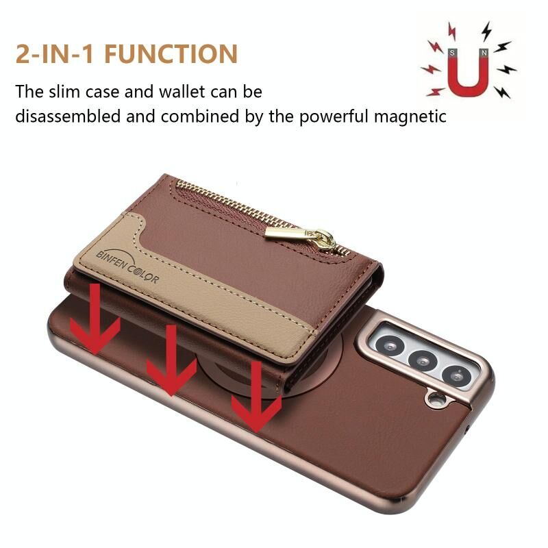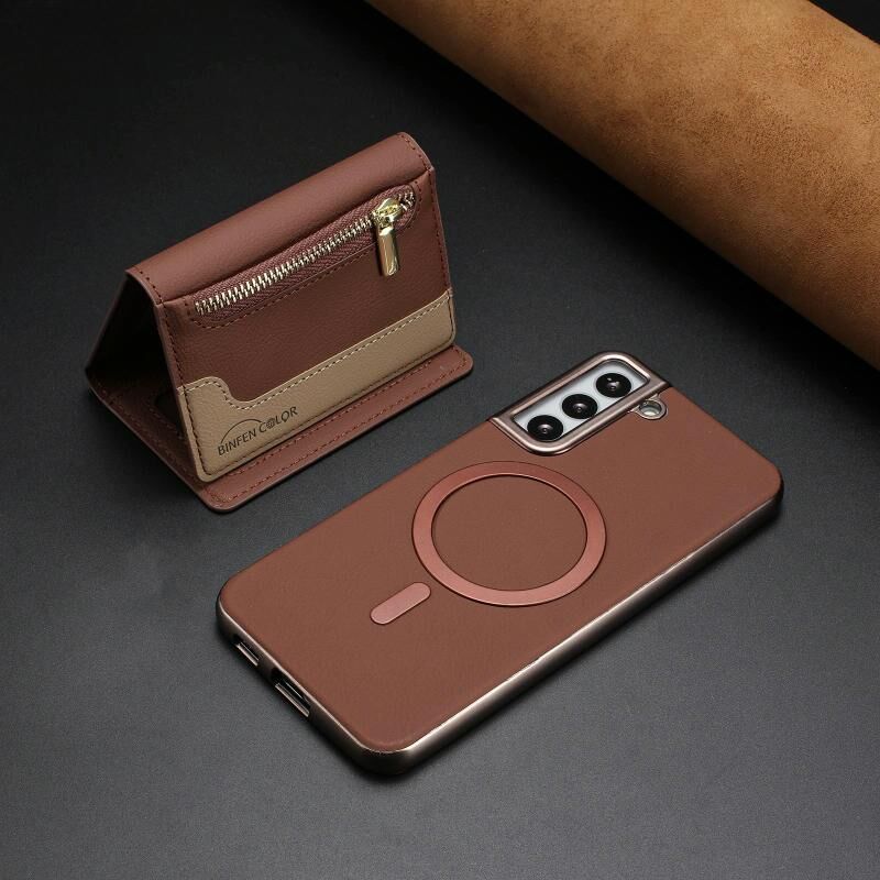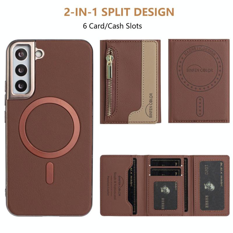 For Samsung Galaxy S25+ 5G Zipper Horizontal Magnetic Card Bag RFID MagSafe Phone Case(Brown)