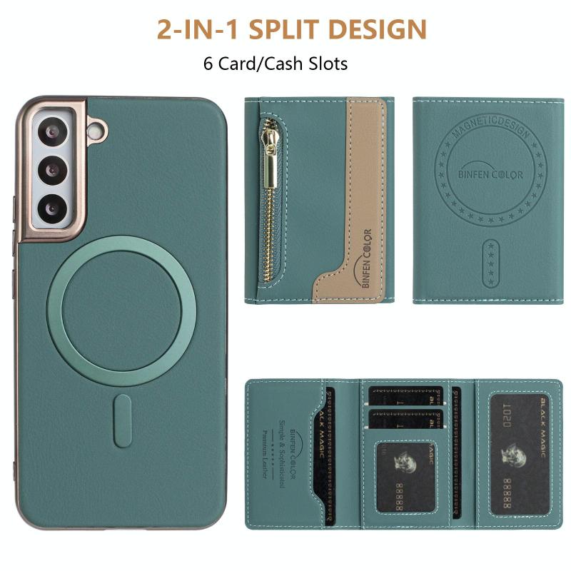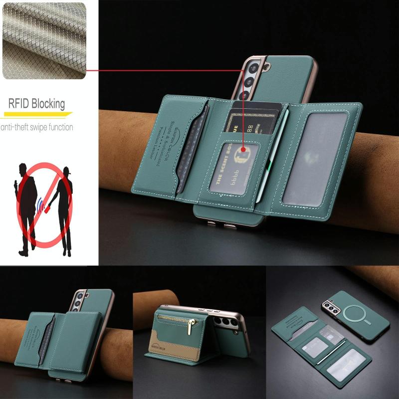 For Samsung Galaxy S25 5G Zipper Horizontal Magnetic Card Bag RFID MagSafe Phone Case(Green)
