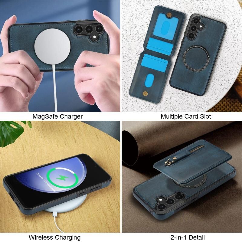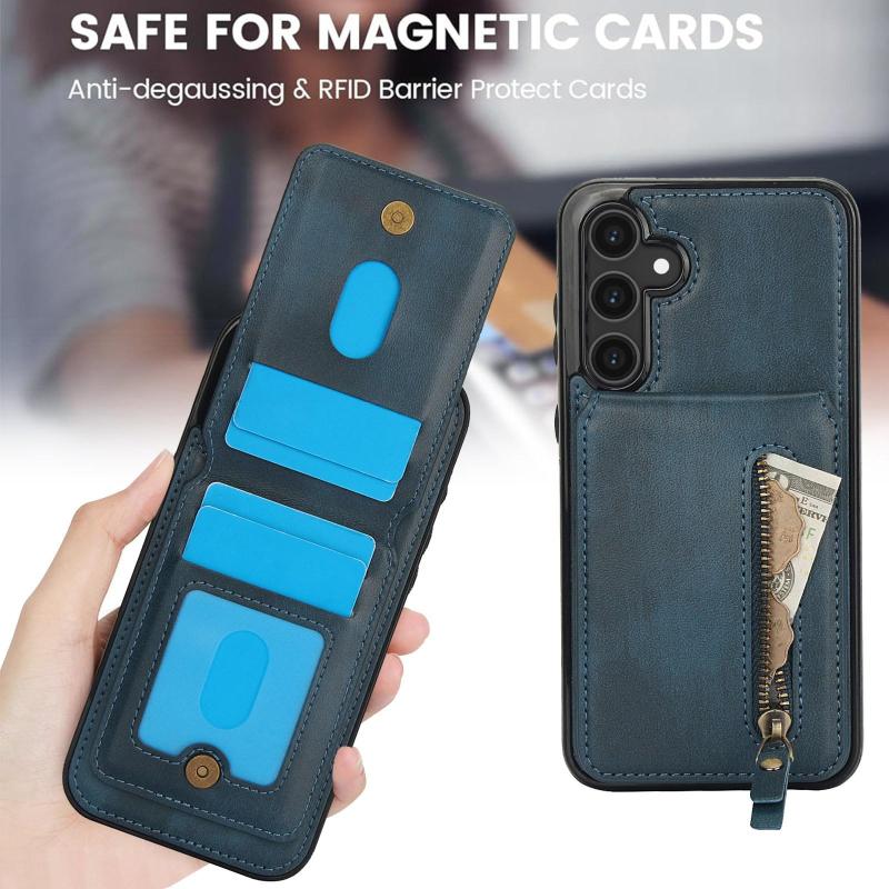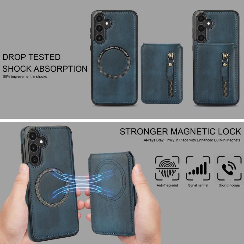 For Samsung Galaxy S25 5G Zipper Wallet Split MagSafe Leather Back Phone Case(Blue)
