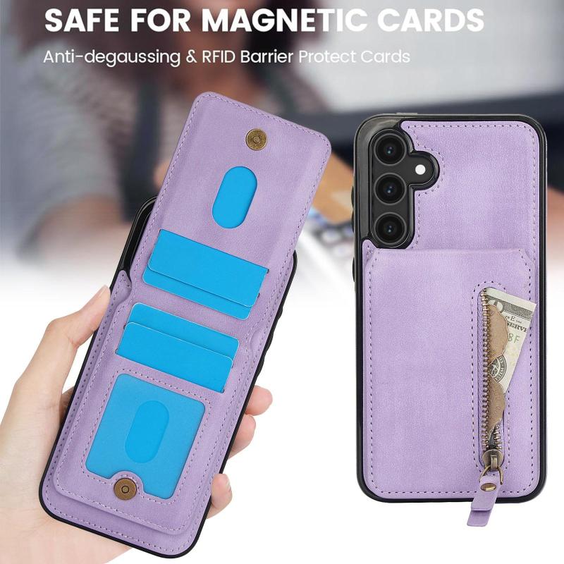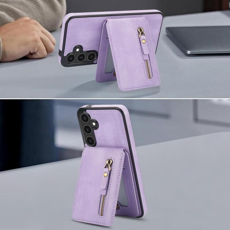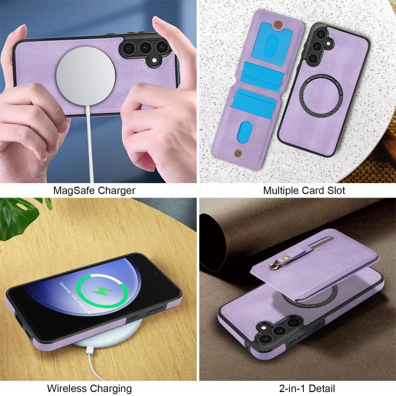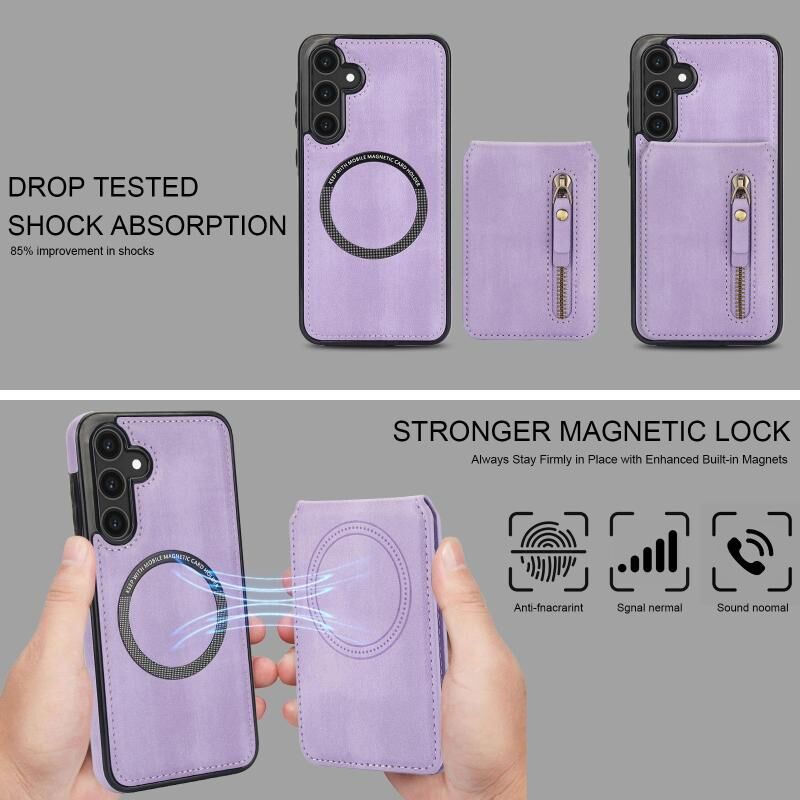 For Samsung Galaxy S25 5G Zipper Wallet Split MagSafe Leather Back Phone Case(Purple)