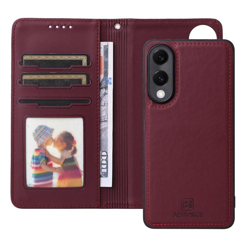 For Samsung Galaxy S25 Edge 5G BETOPNICE BN-005 2 in 1 Detachable Imitate Genuine Leather Phone Case(Wine Red) (BETOPNICE)