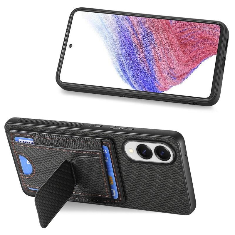 Θήκη τηλεφώνου για Samsung Galaxy S25 Edge 5G από ανθρακονήματα με πτυσσόμενη βάση, ελαστική θήκη για κάρτες (Μπλε)