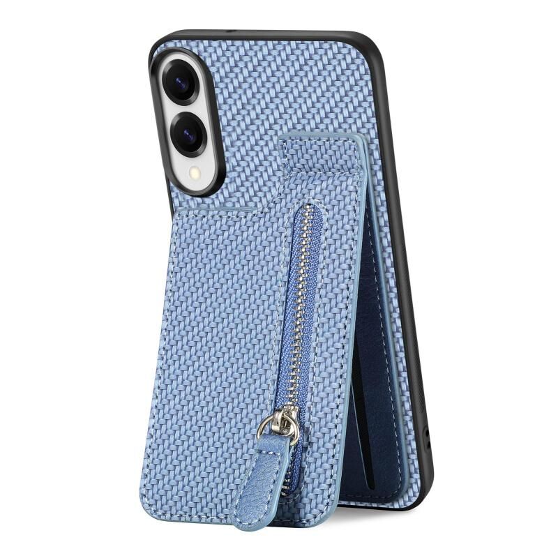 Θήκη τηλεφώνου κάθετης αναδίπλωσης με φερμουάρ από ανθρακονήματα για Samsung Galaxy S25 Edge 5G (Μαύρο)