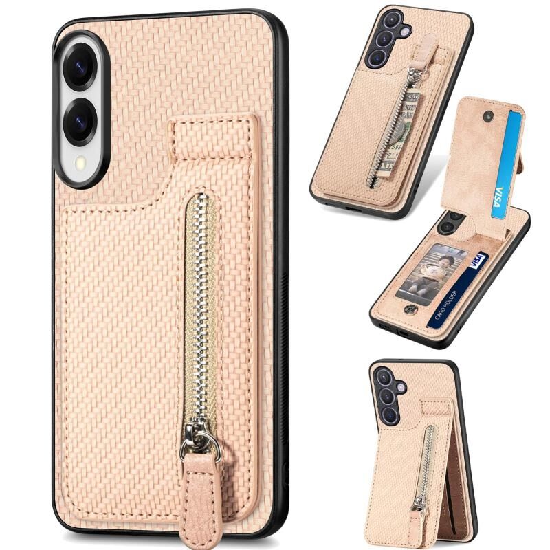 Θήκη τηλεφώνου κάθετης αναδίπλωσης με φερμουάρ από ανθρακονήματα για Samsung Galaxy S25 Edge 5G (Μαύρο)