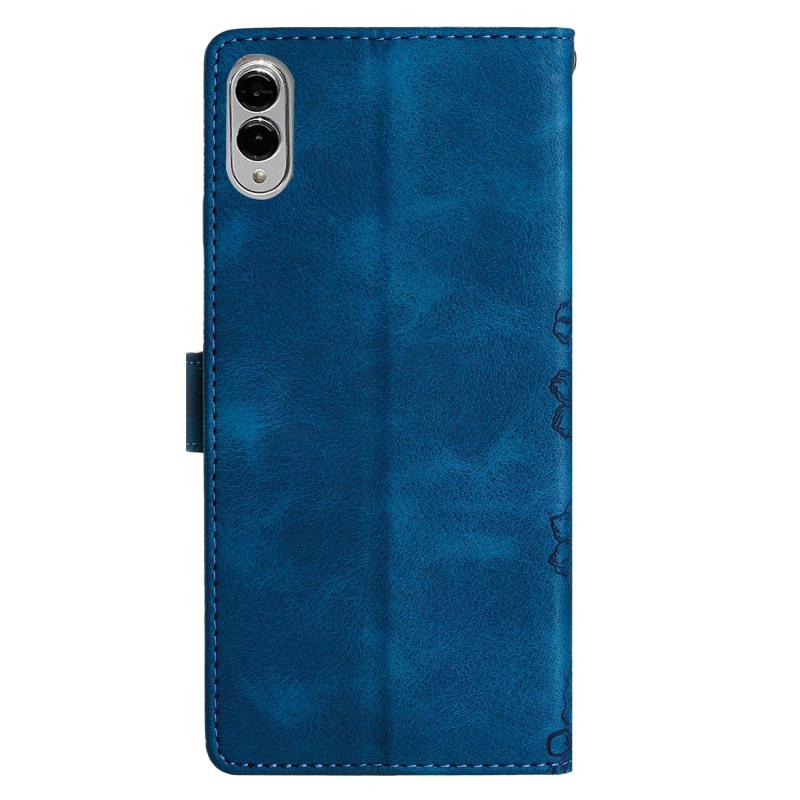 For Samsung Galaxy S25 Edge 5G Cherry Blossom Butterfly Skin Feel Embossed PU Phone Case(Blue)