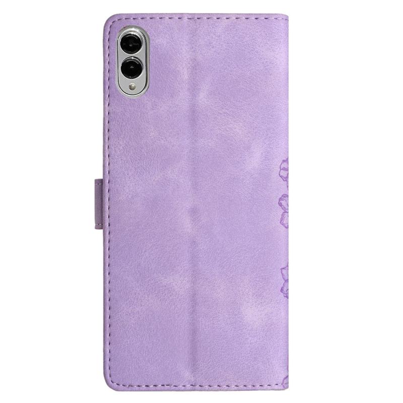 For Samsung Galaxy S25 Edge 5G Cherry Blossom Butterfly Skin Feel Embossed PU Phone Case(Purple)
