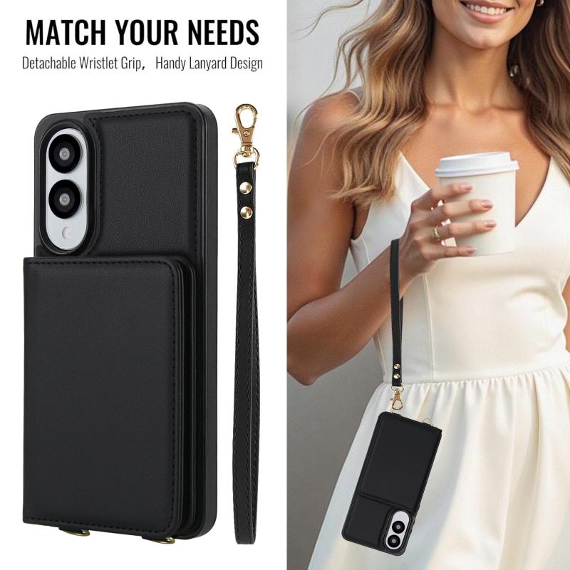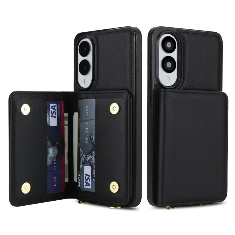 For Samsung Galaxy S25 Edge 5G Crossbody Dual-buckle Wallet RFID Back Leather Phone Case(Black)