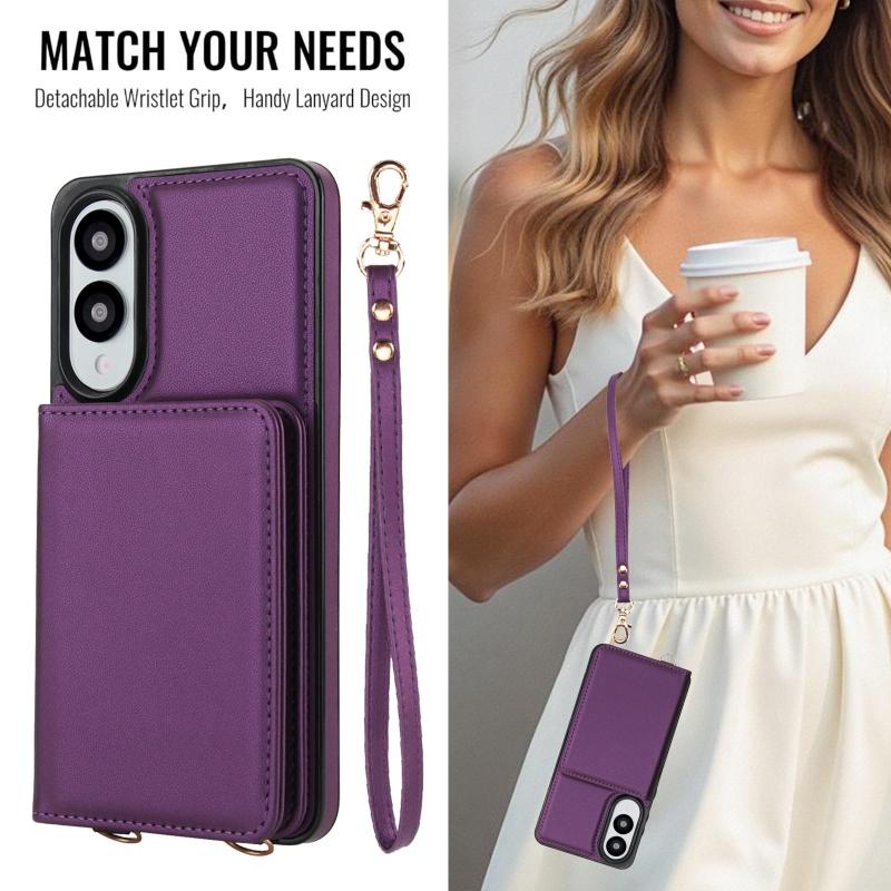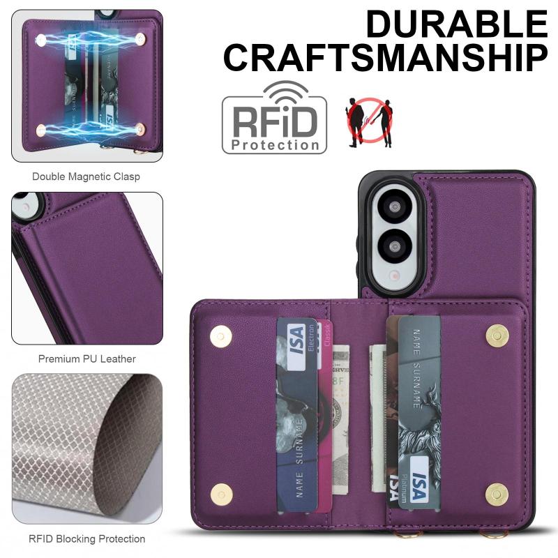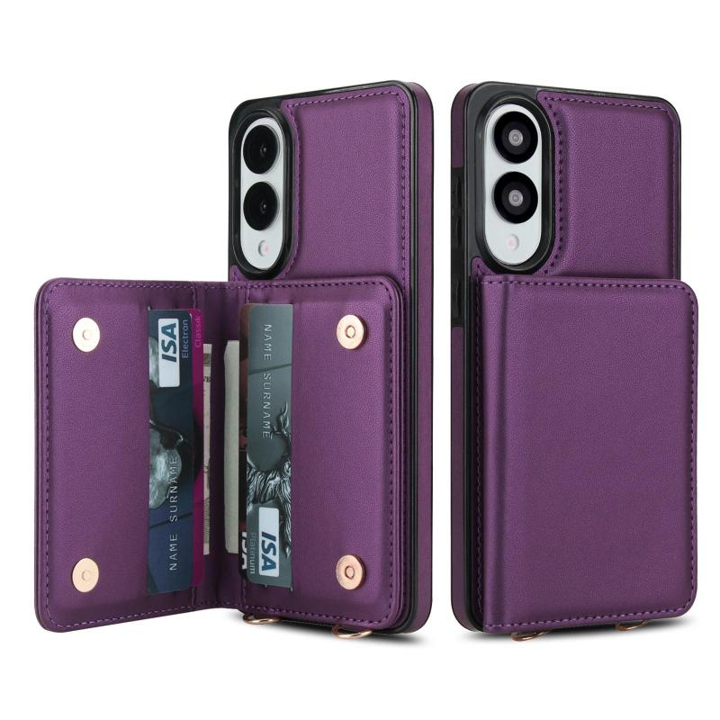 For Samsung Galaxy S25 Edge 5G Crossbody Dual-buckle Wallet RFID Back Leather Phone Case(Dark Purple)