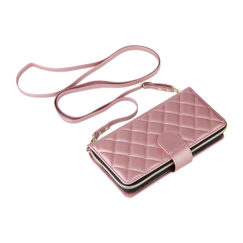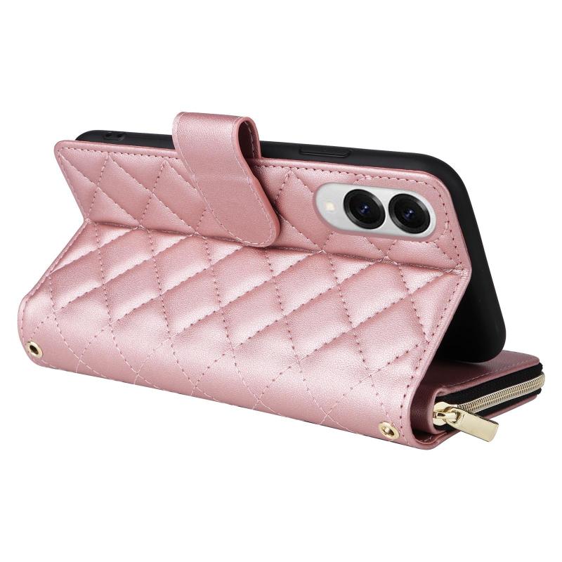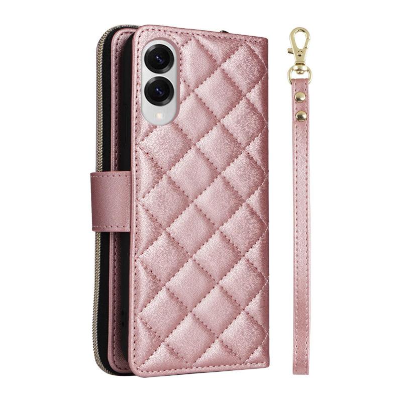 Θήκη τηλεφώνου Samsung Galaxy S25 Edge 5G από δέρμα με φερμουάρ, ρόμβους, αγκράφα πύργου και λουρί (Κρασί)