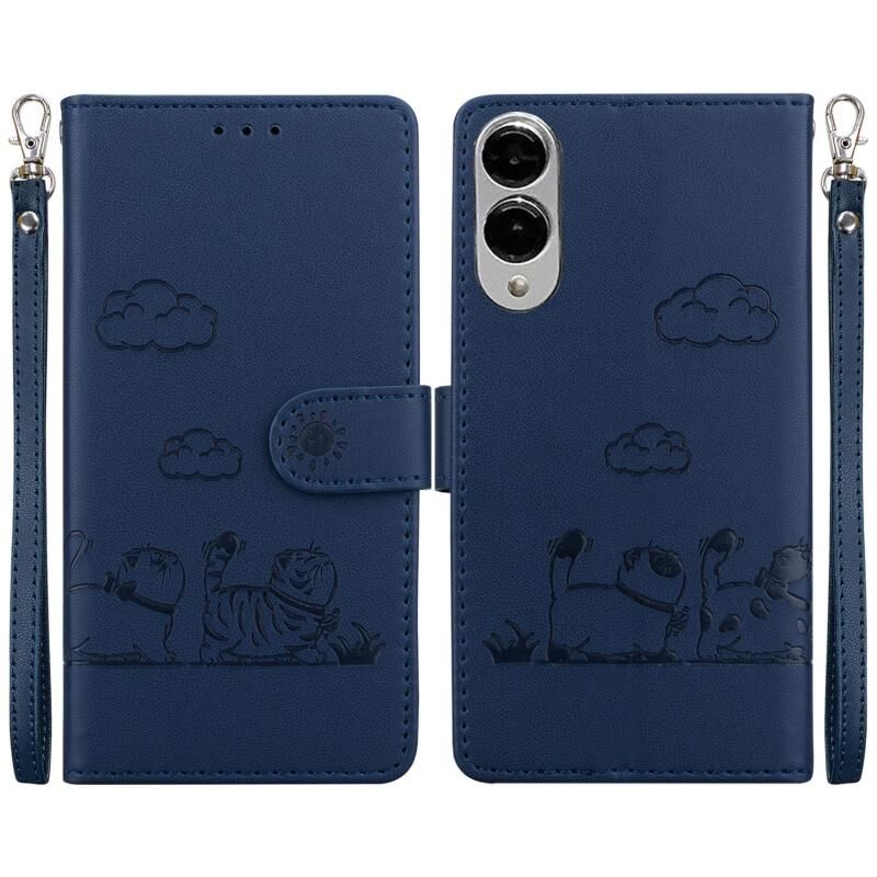 Θήκη τηλεφώνου Samsung Galaxy S25 Edge 5G από δέρμα με χαριτωμένες γάτες και προστασία RFID (Πράσινο)