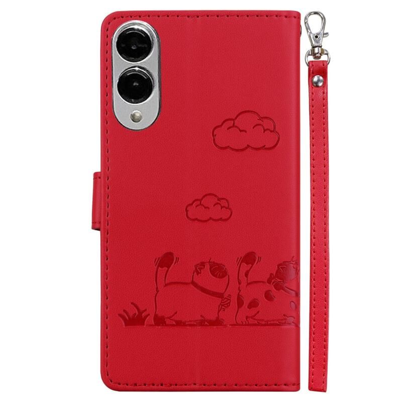 Θήκη τηλεφώνου Samsung Galaxy S25 Edge 5G από δέρμα με χαριτωμένες γάτες και προστασία RFID (Πράσινο)