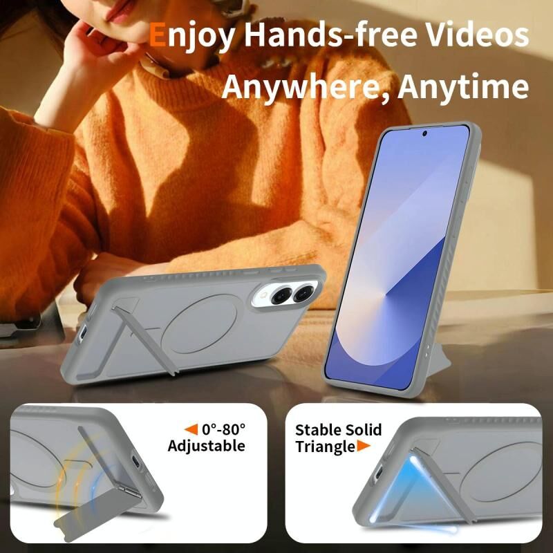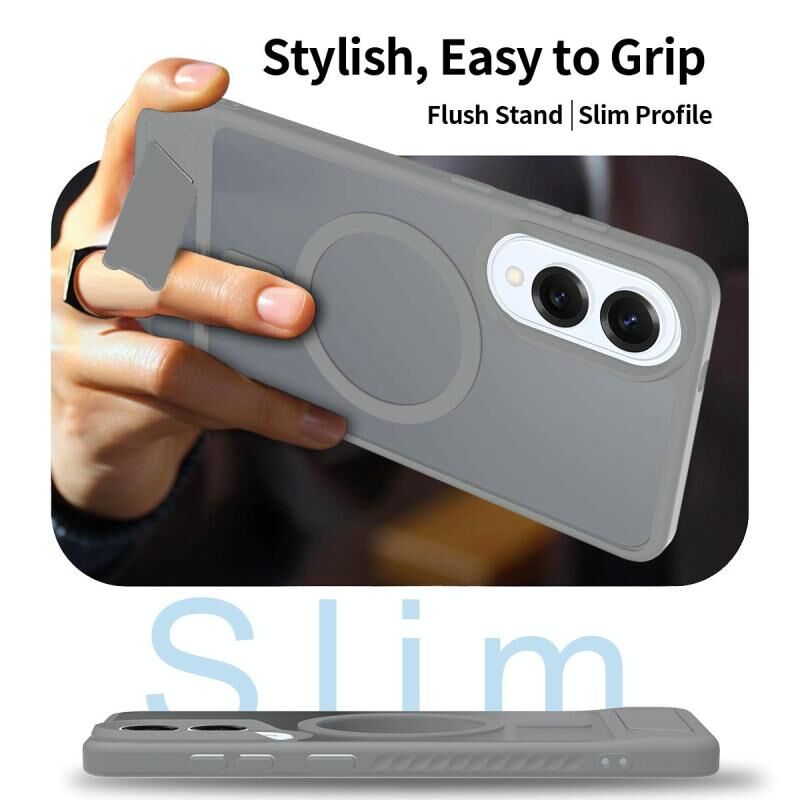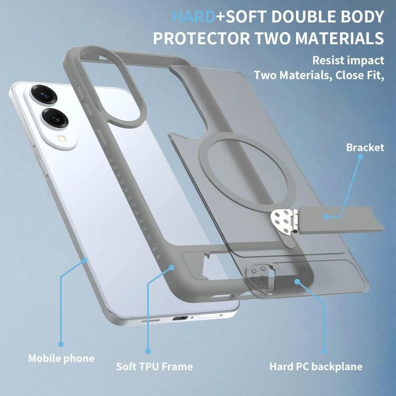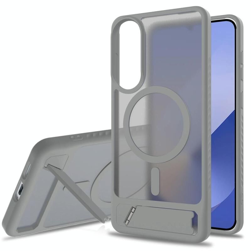For Samsung Galaxy S25 Edge 5G Frosted Holder PC Hybrid TPU MagSafe Phone Case(Dark Grey)