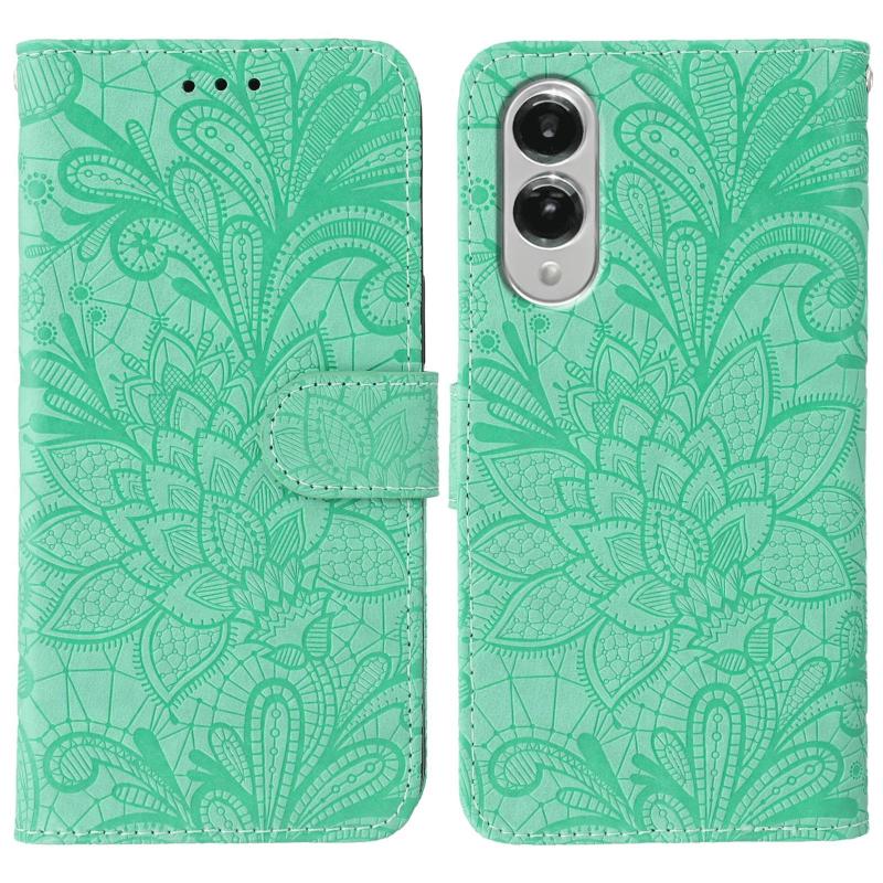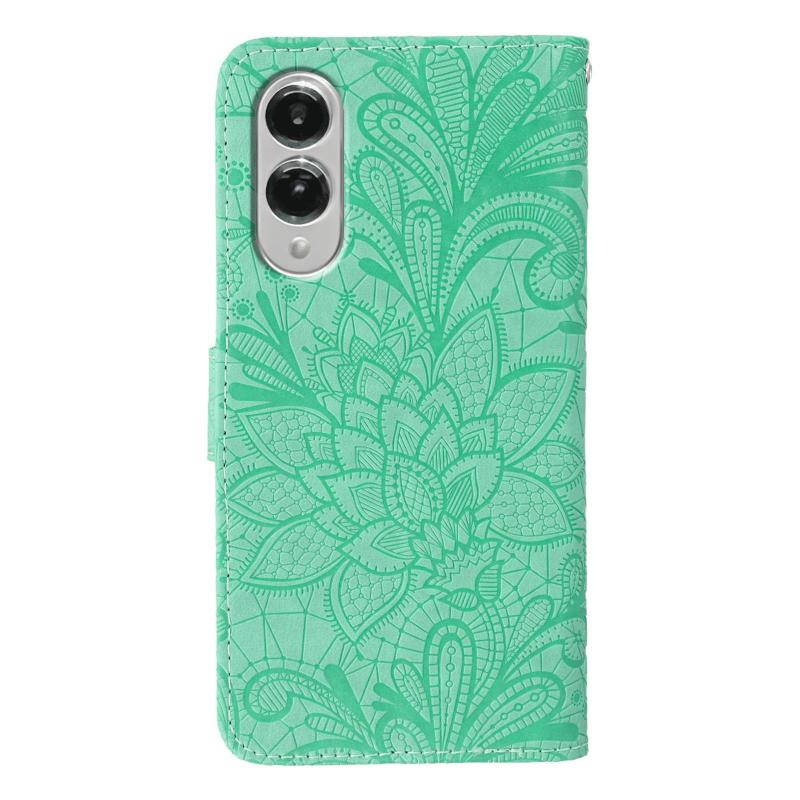 For Samsung Galaxy S25 Edge 5G Lace Flower Embossing Flip Leather Phone Case(Green)