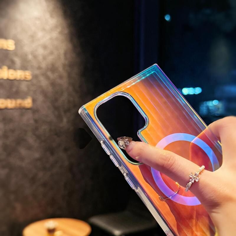 Θήκη τηλεφώνου για Samsung Galaxy S25 Edge 5G με υφή λέιζερ, MagSafe, ανθεκτική στις κρούσεις (κάθετες ρίγες)