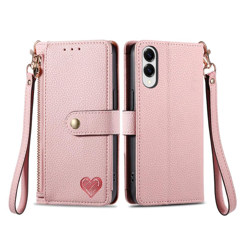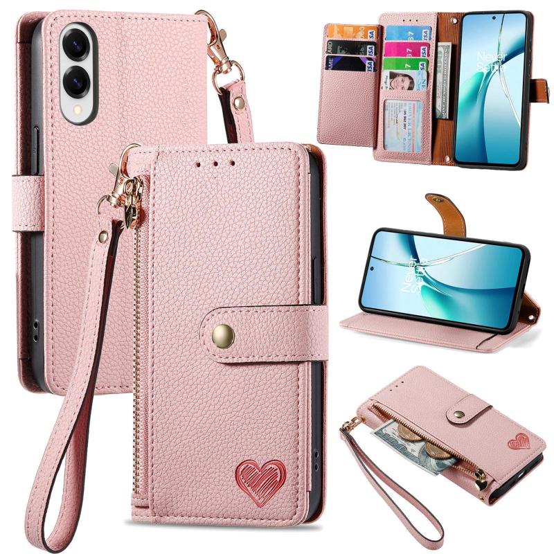 For Samsung Galaxy S25 Edge 5G Love Zipper Lanyard Leather Phone Case(Pink)